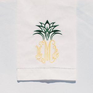 Custom Monogrammed Linen Hemstitch Hand Towel, Yellow Pineapple
