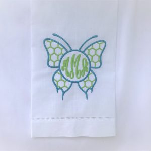 Custom Monogrammed Linen Hemstitch Hand Towel, Butterfly